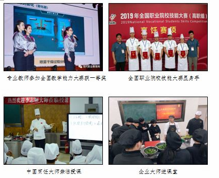 烹饪工艺与营养专业以国家示范专业建设为基础,以中原饮食文化为依托,以行业、企业岗位需求构建课程体系,凝练“讲-演-练-评”教学模式,在教学中不断深化产教融合,推动工学结合,深度挖掘人才培养内涵。实现专业与产业、课程内容与职业标准、教学过程与生产过程、学历证书与职业资格证书、职业教育与终身学习的深度对接。烹饪工艺与营养专业拥有一支专业技能过硬、“双师”素质优良,以高级技师、烹饪大师、名师组成的教学管理经验丰富的优秀教学团队,现有专兼职教师23人,其中博士1人、副教授3人,享受国务院津贴1人、中国烹饪大师3人、中国烹饪名师1人、“五一劳动奖章”获得者1人、“河南省技术能手”2人、高级技师8人、技师8人。