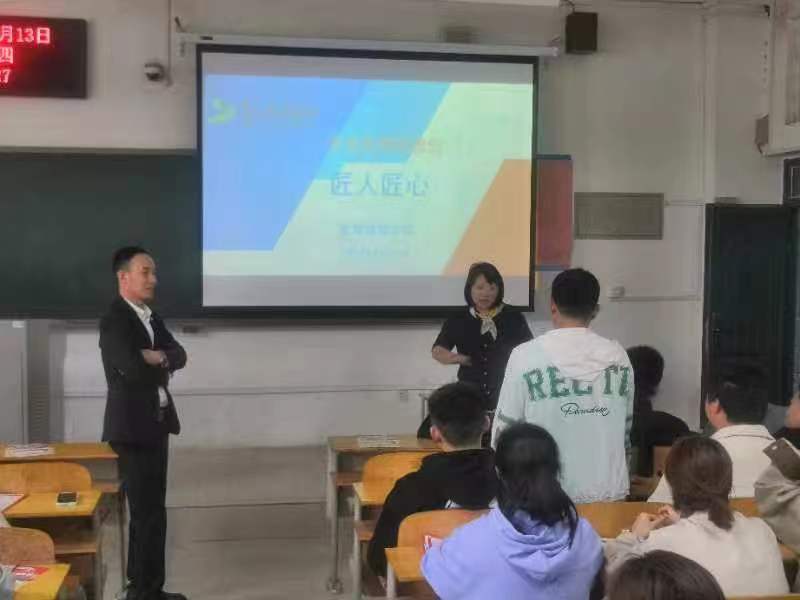 首先,章璐璐讲解了“什么是匠人精神”和“匠人精神的重要意义”。匠人精神就是一种对于工作和生活的追求和投入,是对精益求精、尽善尽美的追求。章璐璐结合自己的职业经历,分享了如何在职场中发挥匠人精神方法和技巧:日常工作中注重细节;坚持提升自己的专业技能;团队中恰当发挥领导力等,为师生们更加深入地分享了匠人精神的内涵和实践。随后,任小龙介绍了开元森泊的企业文化、岗位职责、薪资待遇和晋升发展等方面的情况,重点介绍了公司的招聘政策和职业晋升机制,强调开元森泊作为一家富有匠心和创新精神的企业,一直秉持着“以人为本”的理念,注重员工的职业发展和培训。