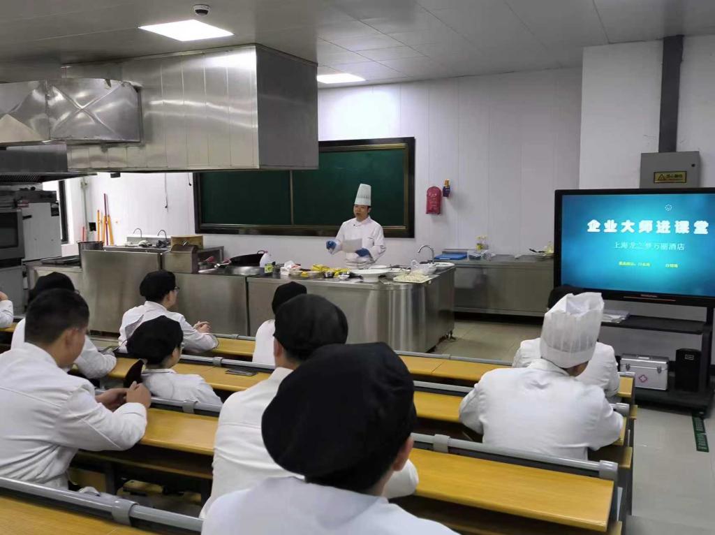 为提高人才培养质量,开阔师生视野,2023年5月10日—12日,烹饪工艺与营养专业和中西面点工艺专业一起开展题为“烹饪职业素养与综合能力提升”的企业大师进课堂活动。本次企业大师分别来自于上海龙之梦万丽大酒店厨师长王炳亮,上海扬子江丽笙大酒店餐饮总监李宾白,上海王品集团行政总厨李遥。各位企业大师分别从各自经历讲述了烹饪综合能力提升的方法与技巧,现场制作展示了经典西餐、时尚中国菜和创新融合菜等菜品。在技能方面,企业大师重点介绍了原料的性质特征,要运用正确的烹调方法,制作出符合当地风味特色或自己独特创新意识的菜肴,色、香、味、器、口感能受到客人青睐,有回味无穷的感受。
