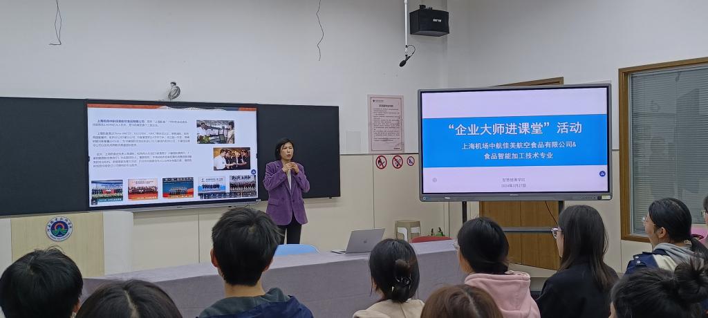 为进一步深化产教融合,促进教学与实践的深度融合,为学生提供更宽广的学习平台和实践机会,3月27日下午,智慧健康学院举办“企业大师进课堂”系列活动第二讲,特邀请上海机场中航佳美航空食品有限公司人力总监贾利杰开展“航空食品行业发展前景展望”专题讲座。会议在合鼎楼902举行,智慧健康学院院长胡二坤主持,食品智能加工技术专业全体教师、食品智能加工技术专业22级学生参会。