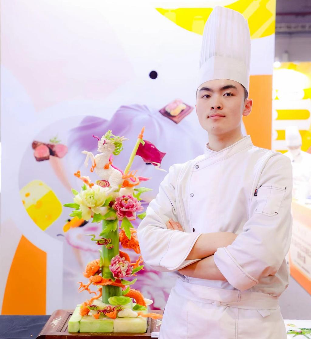 3月26日至3月30日,由中国烹饪协会和上海博华国际展览有限公司共同主办的第三届“寻”中国传承与创新中餐厨艺挑战赛在上海举行。该挑战赛是一项全国性烹饪比赛,包括中式艺术冷拼、中式热菜、中式面点、西式主菜等项目,旨在挖掘和培养新一代烹饪人才,推动中国烹饪技艺的传承与创新,提升中餐文化的国际影响力。智慧健康学院烹饪工艺与营养专业22级学生孙中有以其独特的设计理念和精湛的制作技艺,在众多参赛者中脱颖而出,其雕刻作品“麒麟献瑞”,冷拼作品“冠冕群芳”荣获食品造型艺术项目银奖和艺术冷拼铜奖。