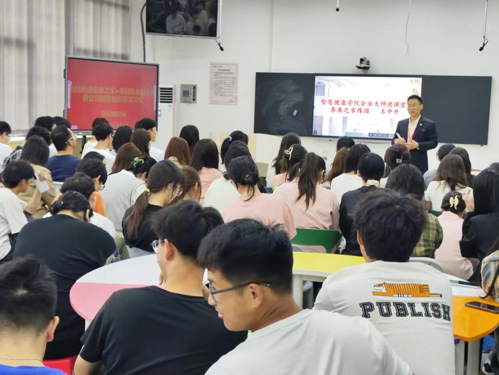为深入了解行业需求,增进学生岗位认知,4月15日下午,智慧健康学院在合鼎楼904举办“企业大师进课堂”系列活动第六讲,特邀泰康之家豫园(郑州)养老服务有限公司人力资源总监王中升一行开展“医养结合机构经营与管理”专题讲座。智慧健康养老服务与管理专业教师及22级全体学生参会。