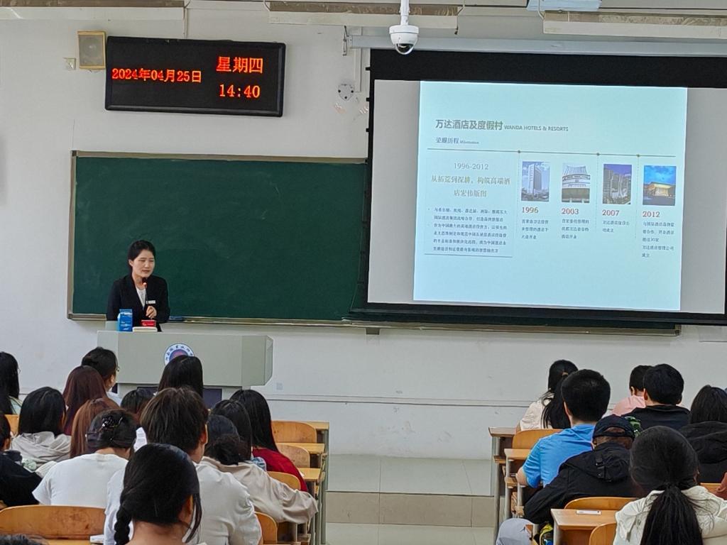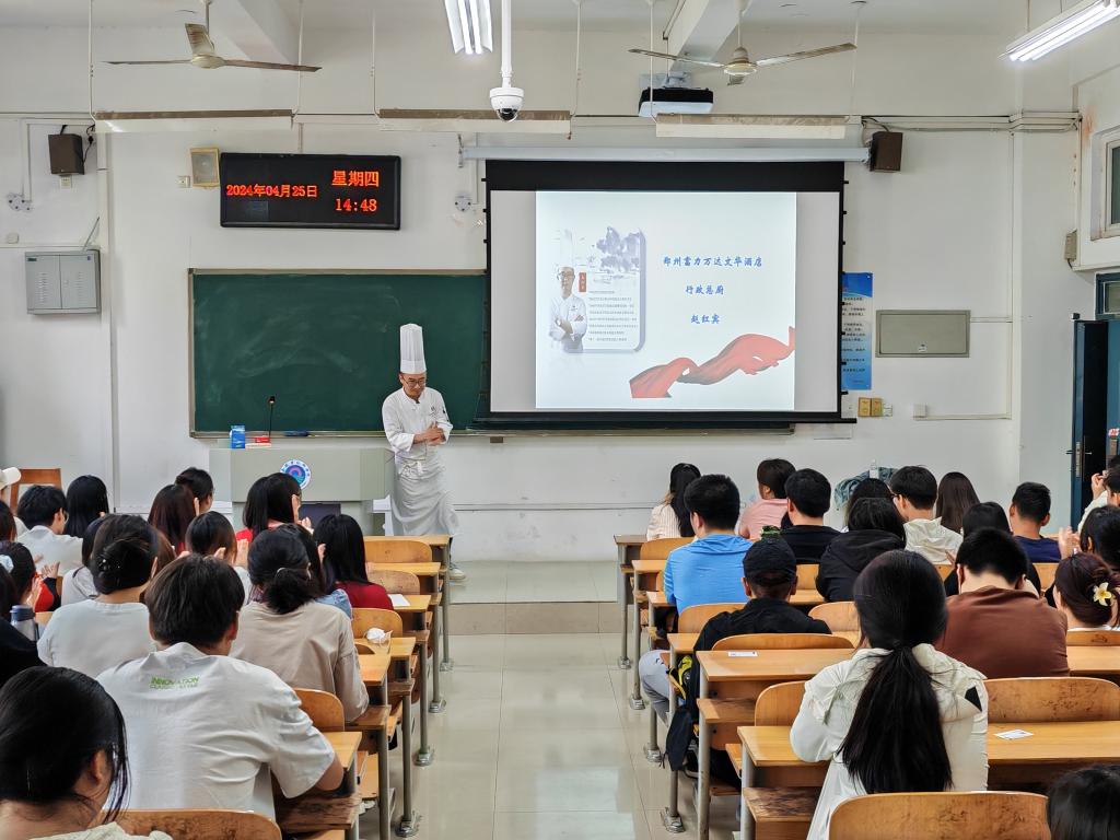 为深入了解当代数字化餐饮行业需求,推动企业深度参与协同育人,提高人才培养质量,2024年4月25日,智慧健康学院在明德楼2203举行“企业大师进课堂”活动,特邀郑州富力万达文华酒店行政总厨赵红斌、郑州建国饭店人力资源主管段乐天、郑州市嘉锦酒店管理有限公司人力资源部总监丁淑芳,长白山万达酒店集团人力资源部总监宋宏彬、河南容大餐饮管理有限公司人事经理王晶晶和苏州松鹤楼饮食集团股份有限公司人力资源部总监虞娇娜等企业大师开展题为“共探数字化餐饮新趋势”的专题讲座。讲座由烹饪工艺与营养专业教研室主任马军卫主持,烹饪工艺与营养专业和中西面点工艺专业骨干教师和22级学生聆听了讲座。