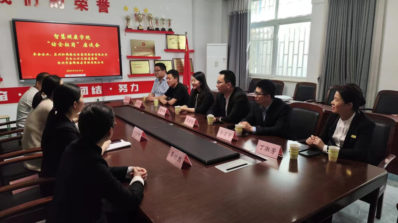 为进一步深入落实访企拓岗促就业专项行动,了解现代餐饮行业人才需求及发展趋势,更好地促进学生就业,4月25日,智慧健康学院特邀苏州松鹤楼饮食集团股份有限公司人力资源部主管虞娇娜、郑州市嘉锦酒店管理有限公司人力资源部副总监丁淑芳,长白山万达酒店集团人力资源资源总监宋宏彬在健行楼109开展“访企拓岗”专题座谈。会议由智慧健康学院副院长李亚欣主持,副院长付红丹,烹饪工艺与营养专业教研室主任马军卫和中西面点工艺专业教研室主任闫海涛出席了座谈会。