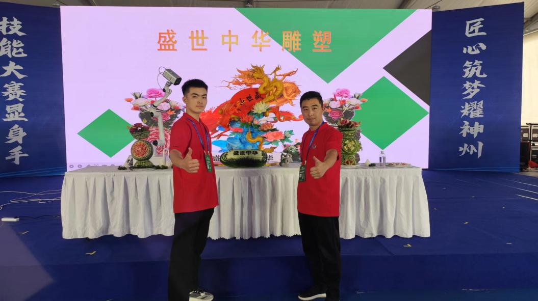 在这场技能与创意的较量中,我院师生以卓越的表现脱颖而出。由烹饪工艺与营养专业教师马军卫携手中餐22级学生孙中有共同创作的“盛世中华雕塑”作品,作为郑州市人力资源和社会保障局参展的亮点之一,赢得了广泛赞誉。该作品以精湛的雕刻技艺生动展现了祖国繁荣昌盛的美好景象,其寓意深远,技艺高超,令现场观众叹为观止,纷纷给予高度评价。