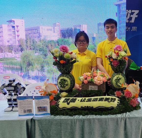 师生现场展示了精心制作的果蔬雕刻、面塑和中式面点作品,以花团锦簇果蔬雕刻、国色天香面塑和牡丹花馍寓意祖国繁荣昌盛,充分展示了我院师生精湛的烹饪技艺和创新能力。