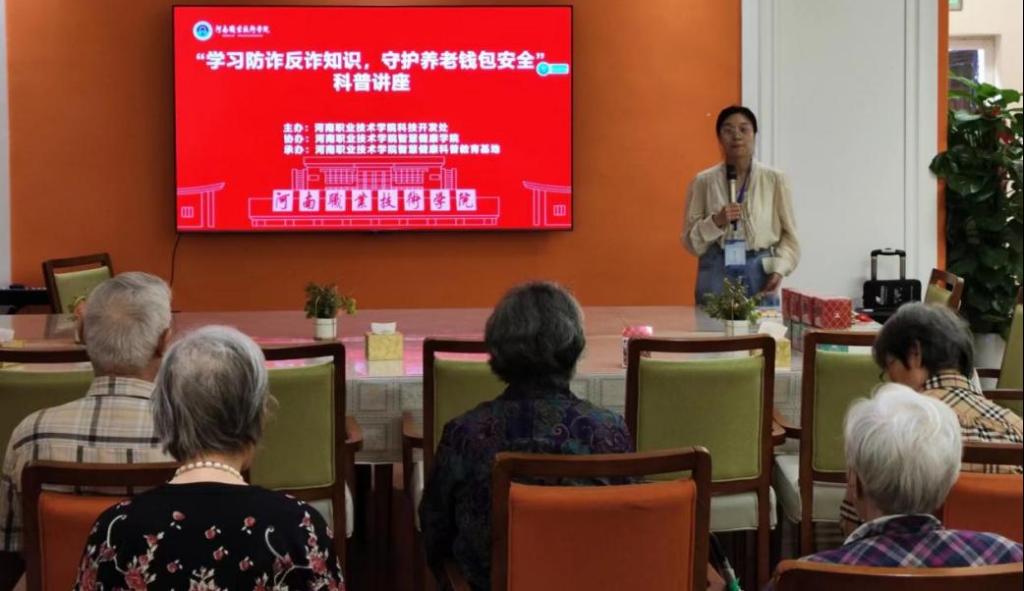 重阳之际,为弘扬中华民族爱老敬老的传统美德,营造尊老、敬老、爱老、助老的氛围,10月10日,智慧健康科普教育基地10余名师生到经八路街道养老服务中心开展了主题为“学习防诈反诈知识,守护养老钱包安全”的防诈骗科普讲座。