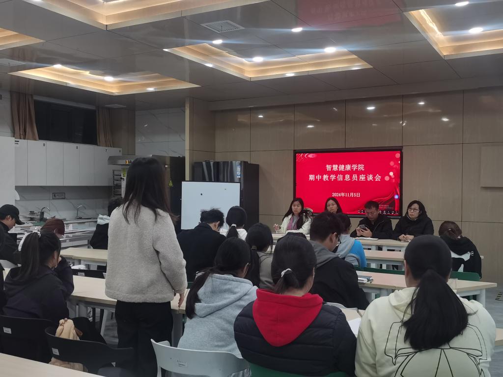 为进一步加强教学质量监控,及时、准确地掌握教学运行动态,确保我院教学运行的顺畅与高效,11月5日,智慧健康学院在健行楼101召开了2024-2025学年第一学期教学信息员座谈会。此次会议由教学副院长李亚欣主持,教学督导组成员、各班教学信息员以及学生代表积极参与,共同为学院的教学质量提升献计献策。