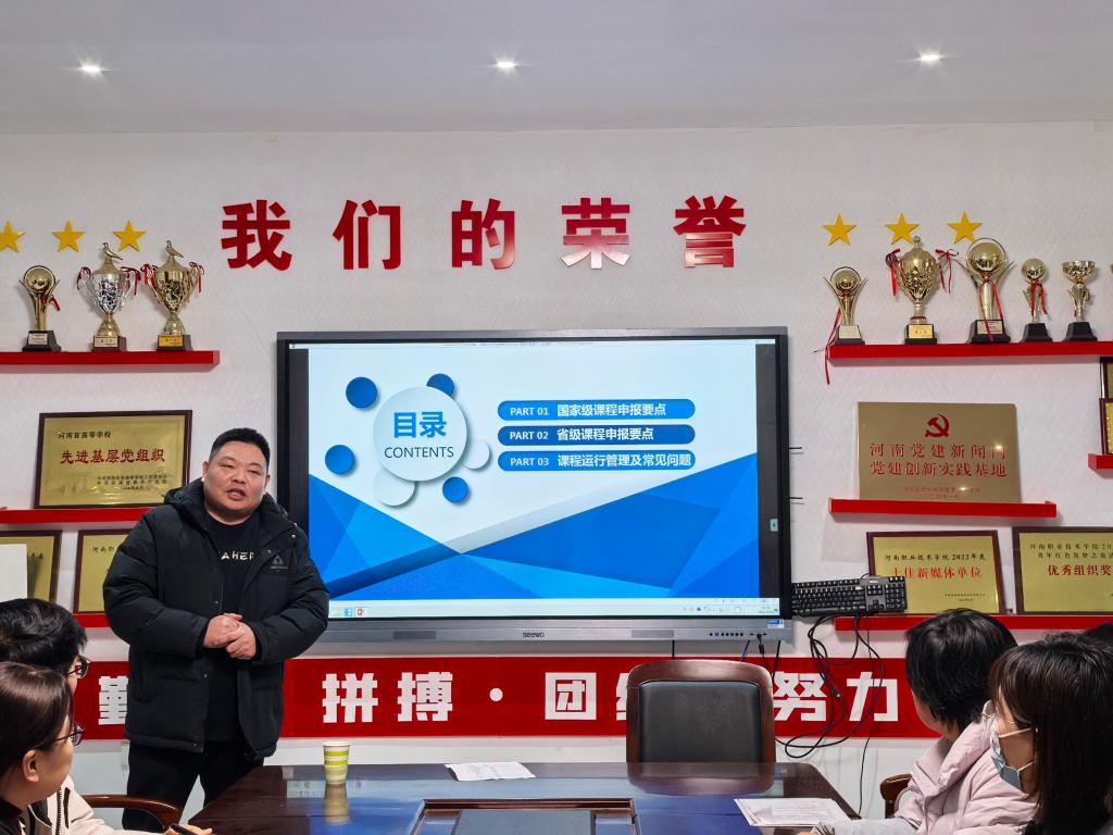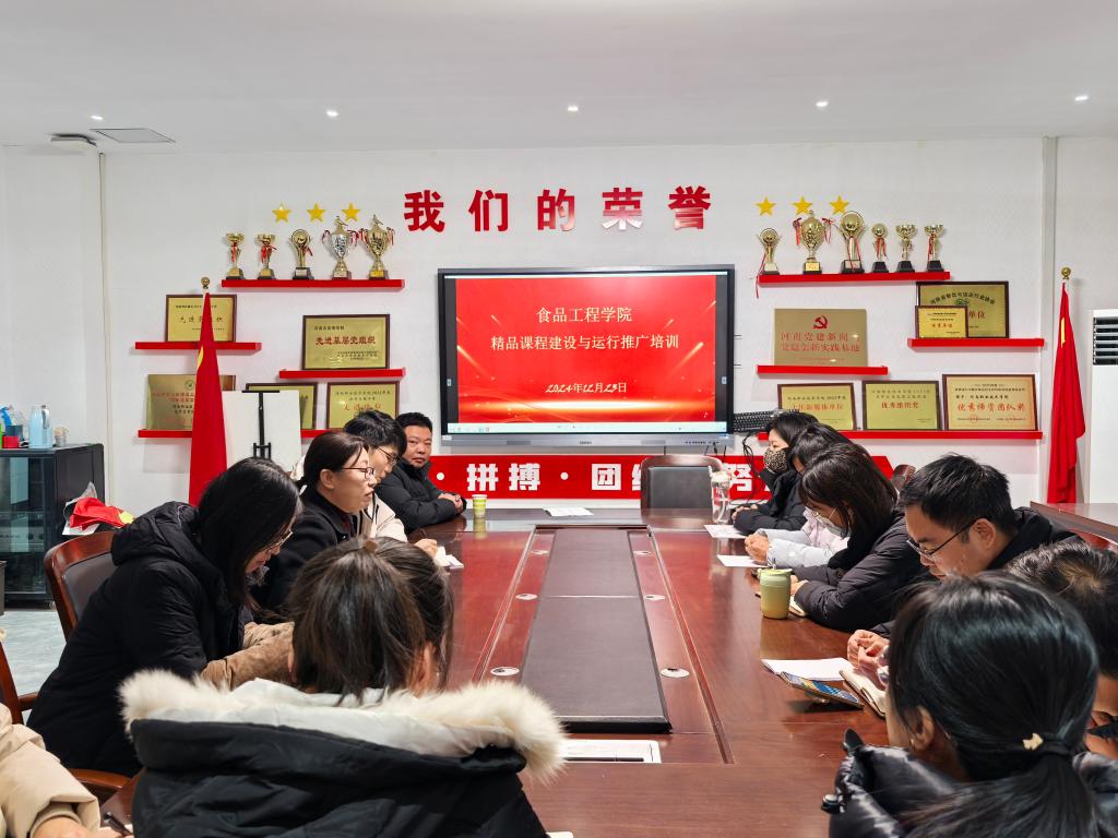 为进一步推动数字技术与教育教学领域的融合应用,提升精品在线课程建设质量,12月23日下午,食品工程学院邀请教务处贺继勇老师在健行楼109会议室开展精品在线课程建设与运行推广培训会。会议由食品工程学院院长胡二坤主持,学院精品课程负责人及主要团队成员参加会议。