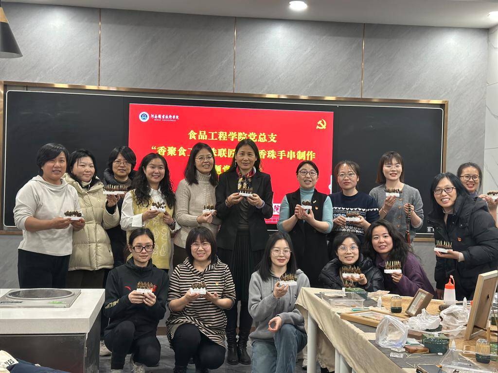 活动尾声,女职工们纷纷与自己亲手制作的香珠作品合影留念。此次活动不仅让女职工们感受到学院的关怀,更通过“香料+手作”的创新形式,展现了食品工程人的专业素养与文化情怀。(供稿:张萌萌;审稿:张宇)
