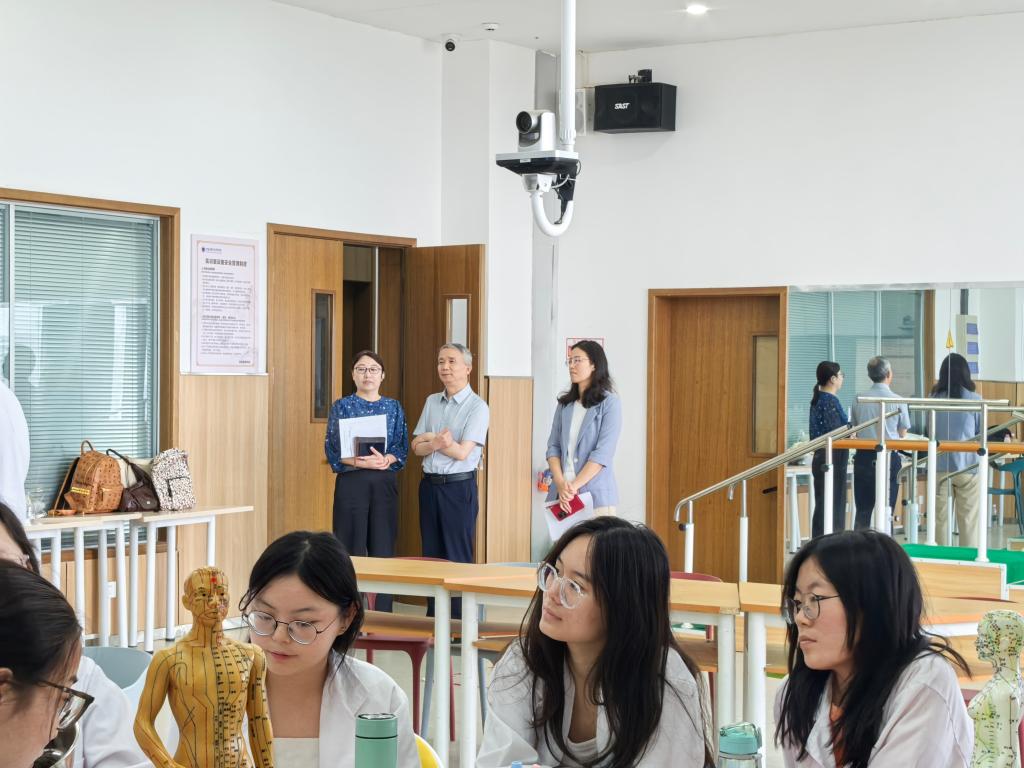 听课过程中,盛兴文聚焦课堂教学实效,既认真察看班级出勤、专注聆听教师授课、详实记录教学内容,又深入观察教学环节设计与实施情况。在《餐饮食品质量检测实训》课堂,授课教师赵瑞洁系统阐释了凯氏定氮法的原理与应用,并紧密联系公共安全事件“大头娃娃”案例,深入剖析了高效液相色谱法检测原料乳中三聚氰胺的技术要点。盛兴文细致观摩了教师运用虚拟仿真软件演示样品前处理流程的教学过程。在《老年照护实训》课堂,教师张儒雅在讲授经络穴位基础知识和常见香气中药辨识后,指导学生亲手实践中药香珠制作。盛兴文饶有兴致地观摩学生操作,并与学生亲切交谈,了解学习体验和收获。