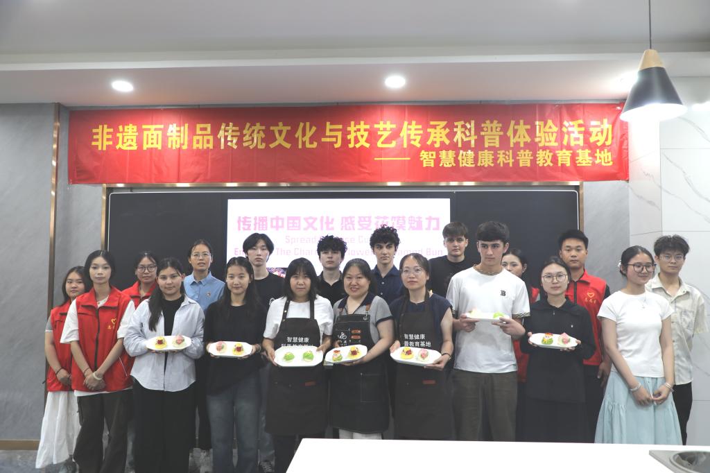 为弘扬中华优秀传统文化,促进国际文化交流,智慧健康科普教育基地于6月12日在健行楼202成功举办国际留学生花馍文化交流及制作体验活动。本次活动特别面向我校国际教育学院留学生,旨在通过沉浸式体验,让他们近距离感受中国非物质文化遗产——花馍的独特魅力。