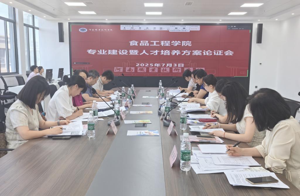 为精准对接区域经济发展与新质生产力需求,全面提升人才培养质量,7月3日,食品工程学院召开专业建设暨人才培养方案论证会。会议邀请漯河食品工程职业大学副校长罗红霞教授、河南农业职业学院食品工程学院院长汤高奇教授、漯河职业技术学院马川兰副教授、贵州农业职业学院食品与药品系主任雷阳教授等高校专家,以及全国检验检测认证职教集团区域运营经理李红超、全国检验检测认证职教集团研究中心姜艳副主任、中检集团中原农食产品检测(河南)有限公司副总经理张慧等行业企业代表,共同为学院食品智能加工技术、食品检验检测技术、食品营养与健康三大专业建设把脉定向。学院院长胡二坤、副院长李亚欣及骨干教师参会。