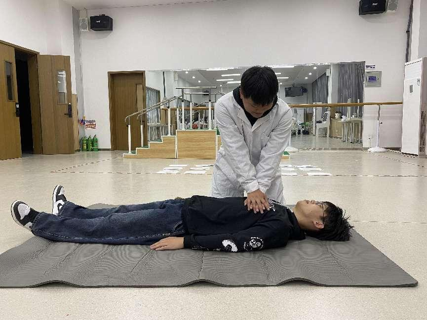 智慧健康养老服务管理教研室教师张儒雅在合鼎楼904室,带领学生教进行了“心肺复苏”急救演练,通过现场模拟,指导学生如何使用正确的救治手法和操作程序,并强调了紧急救助和心肺复苏的相关步骤和操作要点。