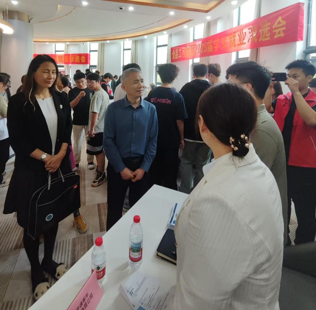 本次双选会呈现出“供需精准对接、产教深度融合”的显著特点。500余个涵盖食品加工、质量检测、餐饮服务及智慧康养等领域的优质岗位,与我院各专业人才培养方向形成高度匹配。盛兴文在巡视中指出,要建立人才培养与产业需求动态调整机制,将“产业链”转化为“人才链”,构建“实习-就业-发展”全周期服务体系。食品工程学院院长胡二坤表示,参会企业中高新技术企业占比达65%,充分体现学院专业建设与区域经济发展的深度融合。