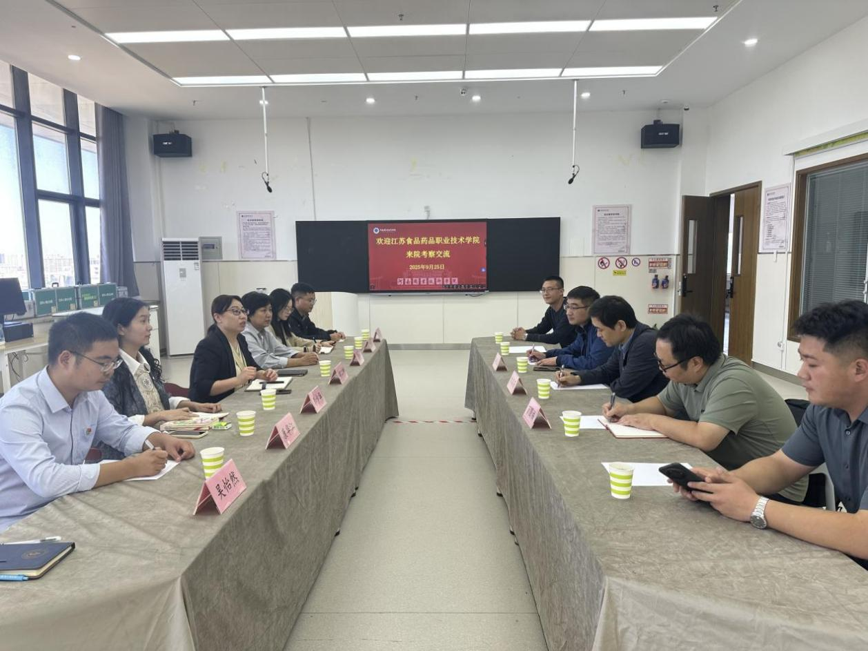 9月25日,江苏食品药品职业技术学院食品学院副院长田其英一行来我院考察交流,食品工程学院院长胡二坤、教研室主任及实训中心工作人员参加交流活动。