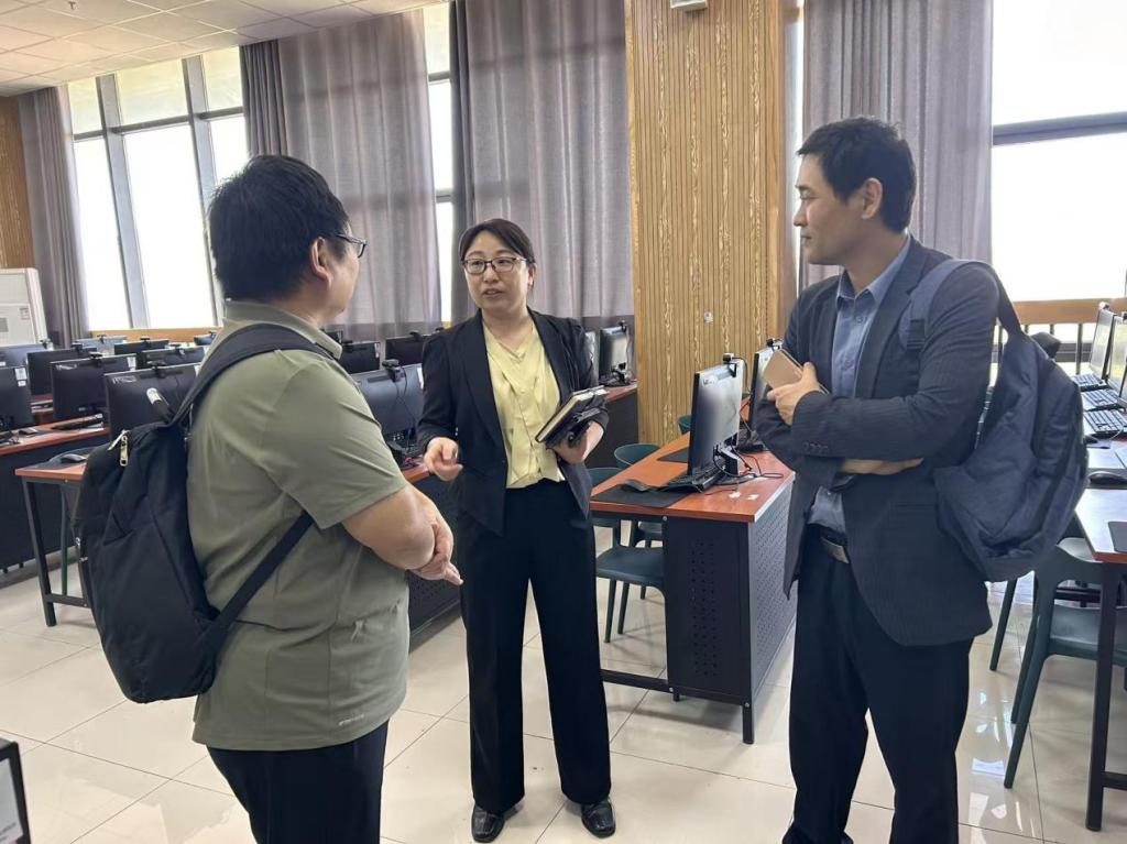 胡二坤对田其英一行的到访表示热烈欢迎,并简要介绍了学院的发展历程、专业特色与优势以及取得的主要成果。她重点分享了我院在省级示范性虚拟仿真实训基地建设与应用方面的经验,希望双方以此次交流为契机,相互借鉴、共同提升。