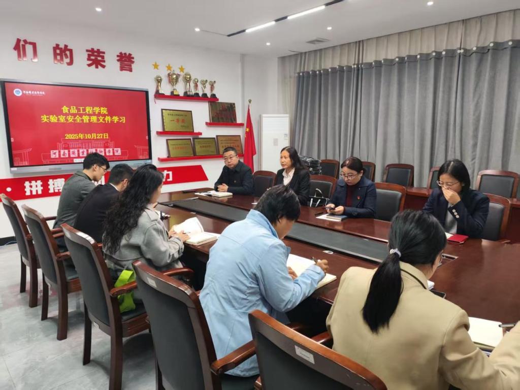 根据学校《2025年“河南职业技术学院第五届实验室安全文化宣传月”活动通知》要求,10月27日,食品工程学院实训中心在健行楼109组织全体专兼职管理员集中学习实验室安全管理文件。
