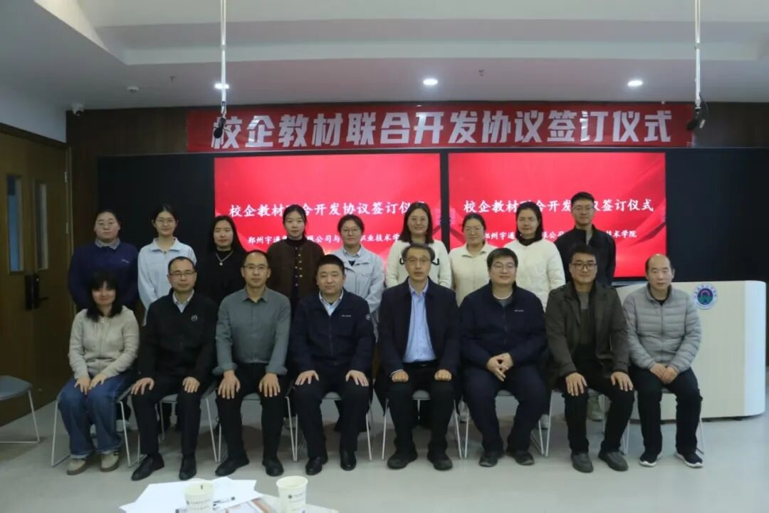 为深入贯彻落实国家关于产教融合、校企合作的战略部署,推动教育教学改革与汽车产业高质量发展同频共振,全面提升高素质技术技能人才培养质量,10月30日,汽车与交通学院与郑州宇通集团有限公司在合鼎楼717会议室隆重举行校企教材联合开发签约仪式,学院院长吉武俊、副院长冯金广、宇通集团人力资源经理郭永利、校企合作培训经理余雷等领导出席签约仪式,参编教师和企业代表一同参加仪式。