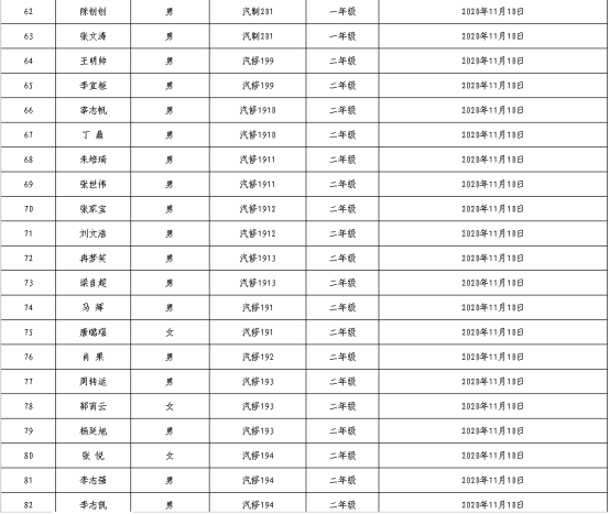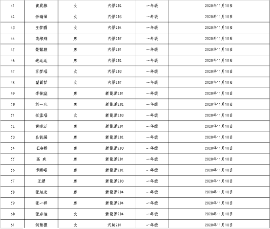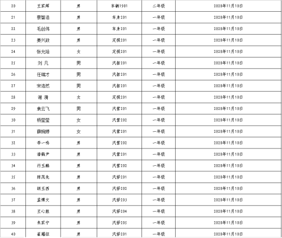 河南职业技术学院2020年汽车工程学院学生党支部支部下半年入党积极分子备案表一览表