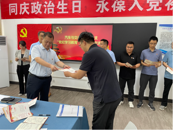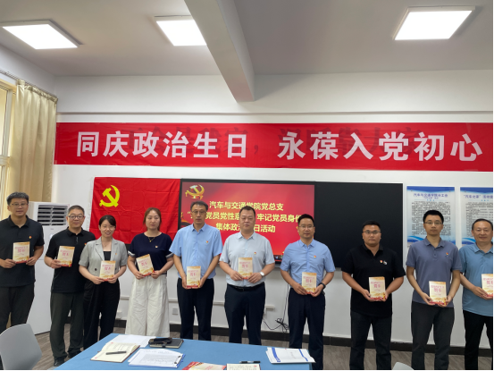为庆祝中国共产党成立103周年,深入推进学习贯彻习近平新时代中国特色社会主义思想主题教育增强党员身份意识、强化党性修养、汲取奋进力量,6月26日,汽车与交通学院党总支以“增强党员党性意识,牢记党员身份”为主题开展,举办了一场庄重又特别的“集体政治生日”活动。我院党总支书记宋东方、院长吉武俊、党总支书副书记夏连峰及全体党员参加了本次活动。