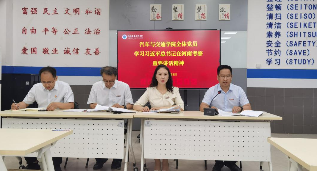 6月9日,汽车与交通学院召开专题学习会,传达学习习近平总书记在河南考察时的重要讲话精神,部署贯彻落实举措。学院领导班子及各支部党员教师参会,党总支副书记夏连峰领学。