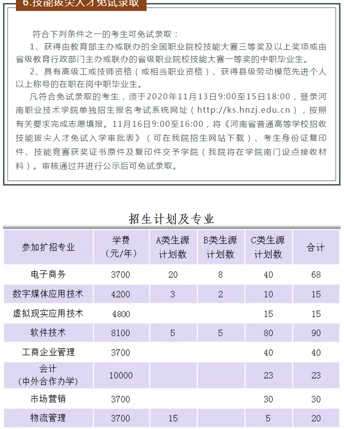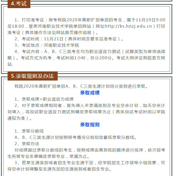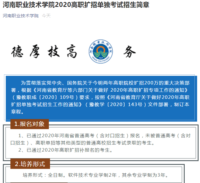河南职业技术学院2020高职扩招单独考试招生简章