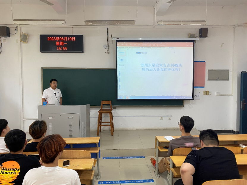 为给学生提供更多实习就业机会,最大程度的拓宽就业渠道,提前帮扶毕业生就业。2023年6月19日下午,汽车与交通学院邀请河南新凯迪汽车销售服务有限公司、郑州东星安太吉吉利4S店到校召开招聘会。2021级110余名学生到会。