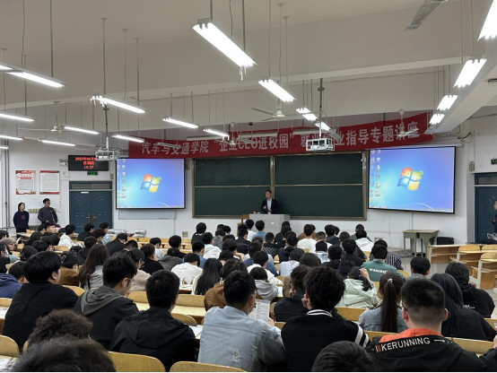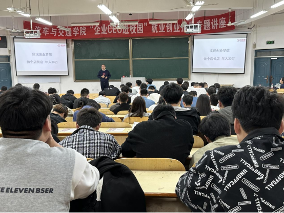 为贯彻落实党中央、国务院“稳就业”“保就业”决策部署,进一步促进毕业生高质量就业。5月4日下午,汽车与交通学院在1101教室举行了“企业CEO进校园”就业创业专题讲座,北京兔师傅汽车科技有限公司创始人兼CEO宋烈进受邀来到我院演讲,我院2021级350名学生参加了活动,本次活动由汽车与交通学院党总支书记宋东方主持。