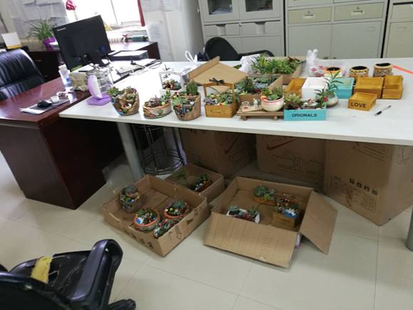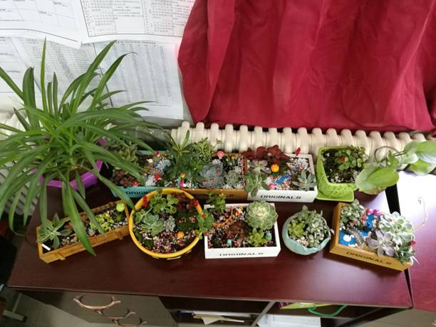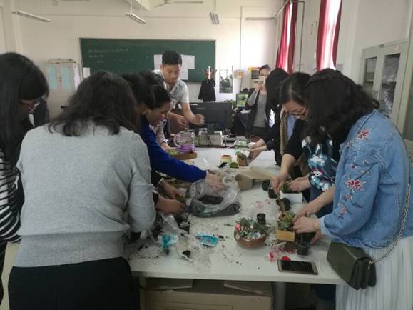 活动上,我系特邀请环境艺术系园艺专业的学生对老师们进行专业指导。在专业指导下,每一位老师根据自己的审美,积极动手,做出一盆盆错落有致的美丽盆栽。