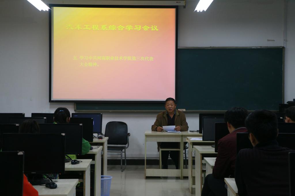 汽车工程系于10月27日下午4点半在汽车实训楼301召开全体教师大会,集中学习学院第三次党代会精神。会议由朱梦杰书记主持。