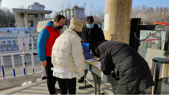 值班期间,我院党员先锋们制定了严格的值班表,与校安保工作人员一起在南大门门口值守,做好出入人员登记、二维码核验、体温测量、车辆检查、消毒等工作,同时贴心的帮助前来做核酸的家属、群众,给他们送上冬日温暖。