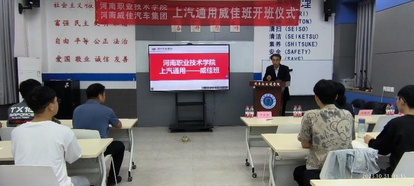 2023年10月31日,河南职业技术学院与河南威佳汽车贸易集团有限公司在位于上汽通用ASEP培训中心的场地,共同举办了上汽通用威佳班的开班仪式。这个仪式为2022级的学生们打开了一个实践与就业的新平台。