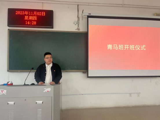 为深入学习贯彻习近平新时代中国特色社会主义思想和党的二十大精神,教育引领广大团员青年成长为坚定的马克思主义者,11月2日下午,我院2023-2024学年“青马工程”培训班正式开班。开班仪式由我院团总支副书记王若彤主持,团总支毛晓羽老师、青马班学员牛珑斯同学以及30余名青马学员参加了此次活动。