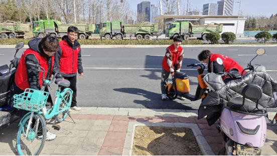 第三站,党员志愿者来到龙子湖公园附近对共享单车乱放乱停现象进行整治。他们将一辆辆乱停乱放的车辆进行搬动和归置,以实际行动,领悟雷锋精神内涵,传承服务他人的优良作风。