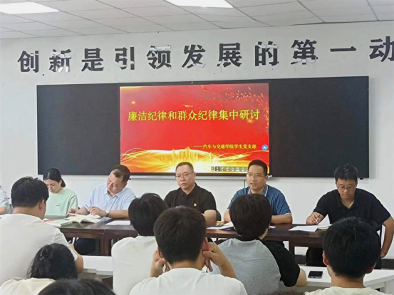 6月13日,汽车与交通学院学生党支部在敏行楼509围绕“廉洁纪律和群众纪律”开展集中研讨。活动由学生党支部书记王德龙主持会议,汽车与交通学院党总支书记宋东方,副书记夏连峰出席会议。