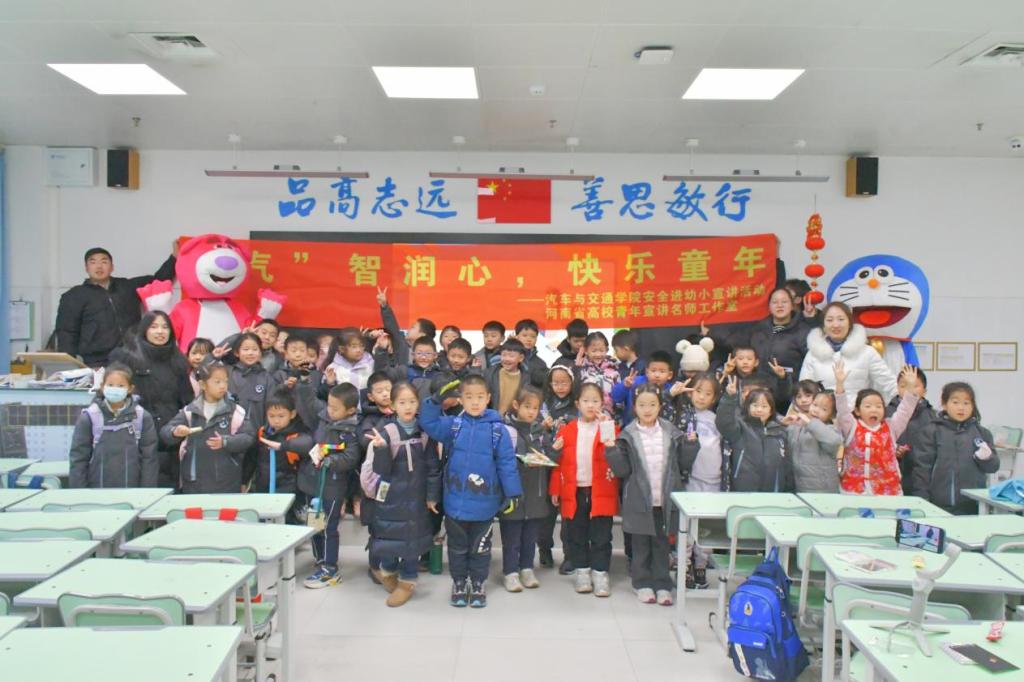 为切实增强青少年的交通安全意识,全方位普及交通安全知识,近日,河南省高校青年宣讲名师工作室、汽车与交通学院学生党支部师生先后走进郑东新区龙子湖幼儿园、河南省第二实验中学、郑东新区文苑小学和舞阳县辛安镇小学开展交通安全知识宣讲活动。汽车与交通学院党总支书记房静、团总支书记毛晓羽、马克思主义学院教师王晓毅和部分师生志愿者参与活动。