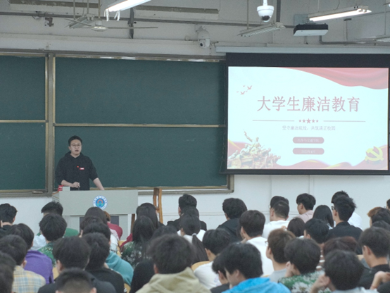 活动中,曲志远紧扣学生工作实际,结合奖助学金评定、学生干部竞选等关键内容,系统剖析了廉洁风险点,深入阐释“廉洁修身”对青年成长的时代价值。他强调,新时代大学生需筑牢思想防线,在评优评先中严守公平正义底线,以自律精神抵制不良风气侵蚀。同时他号召学生骨干、党员发展对象强化政治担当,在思想引领、学风建设中主动亮身份、树标杆,成为清朗校园生态的践行者与守护者。