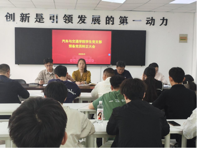 为加强党员教育管理,提升党员发展质量,4月11日上午,汽车与交通学院学生党支部在敏行楼509召开学生党支部党员大会暨2025年上半年预备党员转正大会。会议由学生党支部书记毛晓羽主持,支部全体党员及19名预备党员参加了会议。