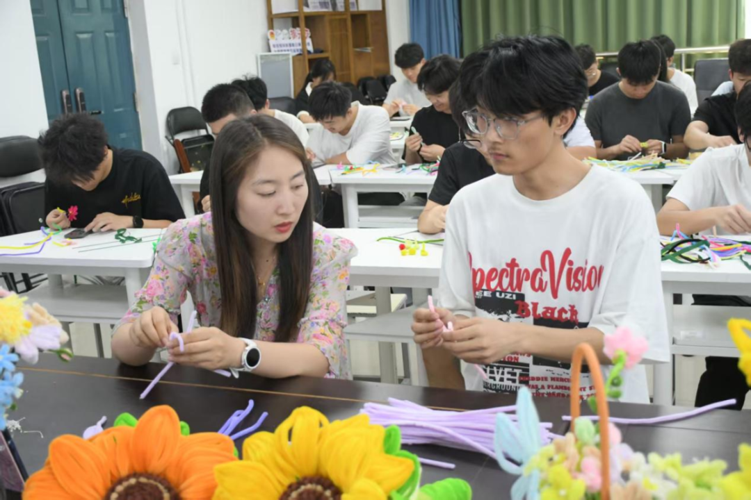 活动现场,彩色扭扭棒在师生们的指尖“编织春天”。大家专注地拧转、缠绕、塑形,原本普通的材料在巧手下化作绽放的玫瑰、灵动的雏菊,还有充满创意的抽象花束。每一个弯折、每一次缠绕,都倾注着对父亲的爱与感恩,也将平日里难以言说的深情,融入这些精致的手工作品中。