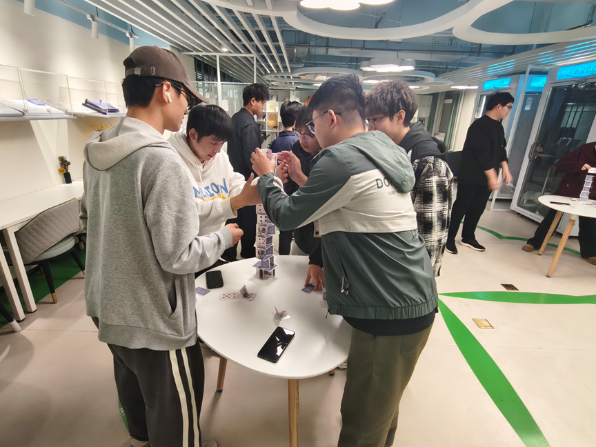 理论学习后,“垒高塔”和“背画”两个特色团体活动迅速活跃了现场气氛。同学们在“垒高塔”中体验了团队协作与压力应对,在“背画”的趣味挑战与欢声笑语中,亲身感受了沟通误区,从而深刻理解了双向沟通的障碍与艺术。