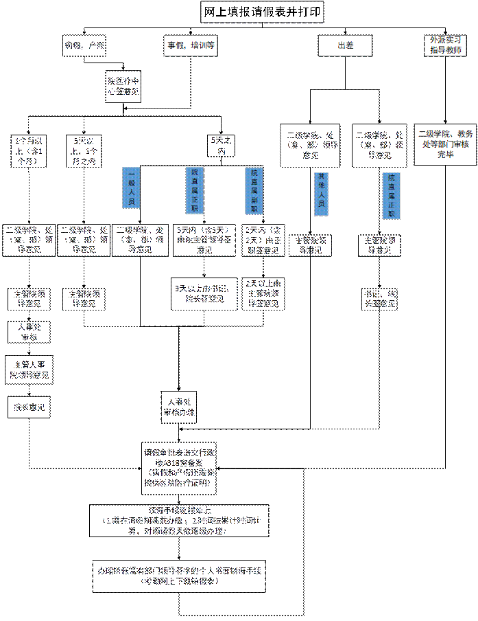 河南职业技术学院教职工办理请(续)假、销假手续流程图