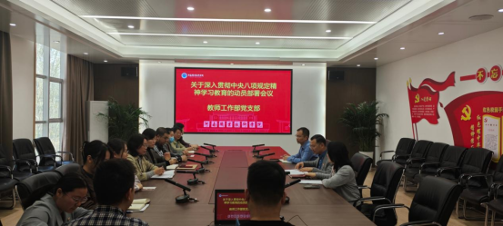 会议强调,教师工作部党支部要按照学校党委(扩大)会议暨党的建设工作领导小组(扩大)会议精神和学校党委书记厉励讲话精神,全面落实党中央关于在全党开展深入贯彻中央八项规定精神学习教育的决策部署,以高度的政治自觉、思想自觉和行动自觉,精心组织,扎实推进,确保学习教育取得实效,为推动学校高质量发展提供坚强的政治保障。