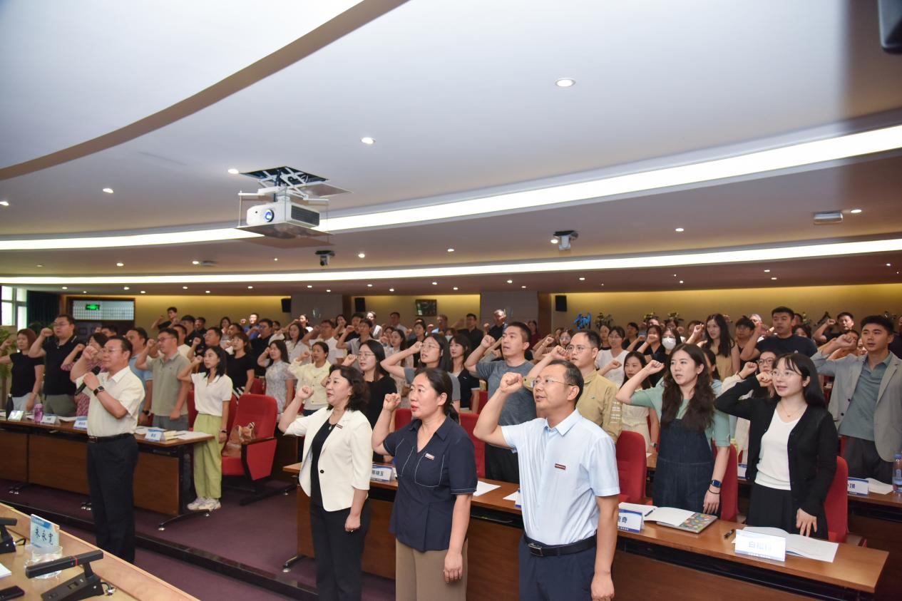 开班仪式上,全国优秀教师吴建华带领全体新入职教师进行入职宣誓。