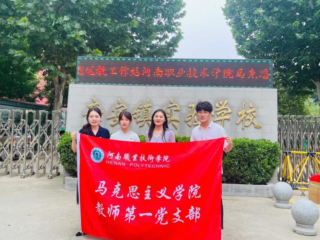 6月16日,马克思主义学院教师第一党支部书记梁杰带领支委会成员及学生赴舞阳县辛安镇实验学校,开展马克思主义学院送教工作站挂牌活动。