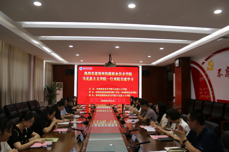 11月3日,河南省高校思政课名师工作室(河南职业技术学院)、河南省高校思政课名师工作室(郑州铁路职业技术学院)联合组织召开了高职高专院校思政课实践教学研讨会。此次研讨交流活动由河南经贸职业学院马克思主义学院承办,河南职业技术学院马克思主义学院和郑州铁路职业技术学院马克思主义学院协办。省高校思政课名师工作室负责人梁杰院长、胡宪刚书记和工作室成员、河南经贸职业学院马院韩培庆院长及三所学校的马院教师代表参与了交流研讨,地点在河南经贸学院行政楼5楼。