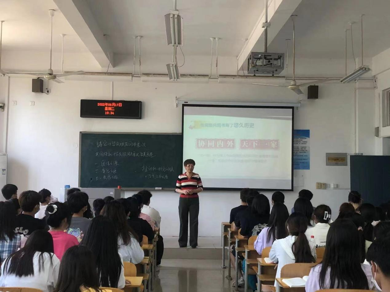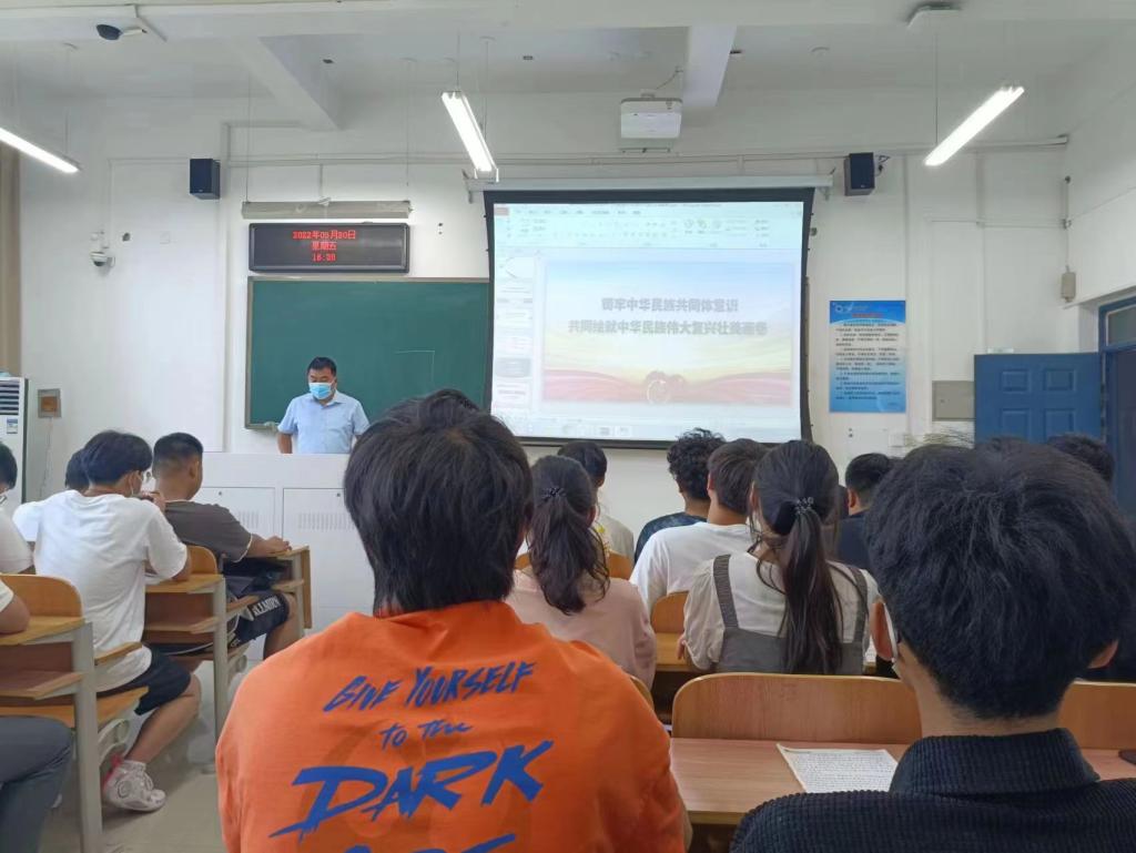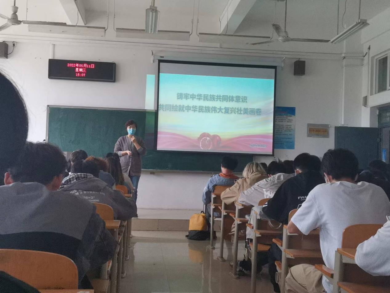 为深入贯彻习近平总书记在中央民族工作会议上的重要讲话精神,进一步铸牢中华民族共同体意识,全面落实《中共河南省委教育工委河南省教育厅河南省民族宗教事务委员会关于开展铸牢中华民族共同体意识主题教育活动的通知》要求,使中华民族共同体理念全方位进课堂、进学生头脑,引导学生牢固树立维护国家统一和民族团结的责任意识和法律意识,马克思主义学院全体教师坚持以习近平新时代中国特色社会主义思想为指导,在今年上半年开展了一系列“铸牢中华民族共同体意识”主题教育活动,准确把握现阶段民族工作历史方位和重要使命,将铸牢中华民族共同体意识主题教育活动融入思政课教学全过程。