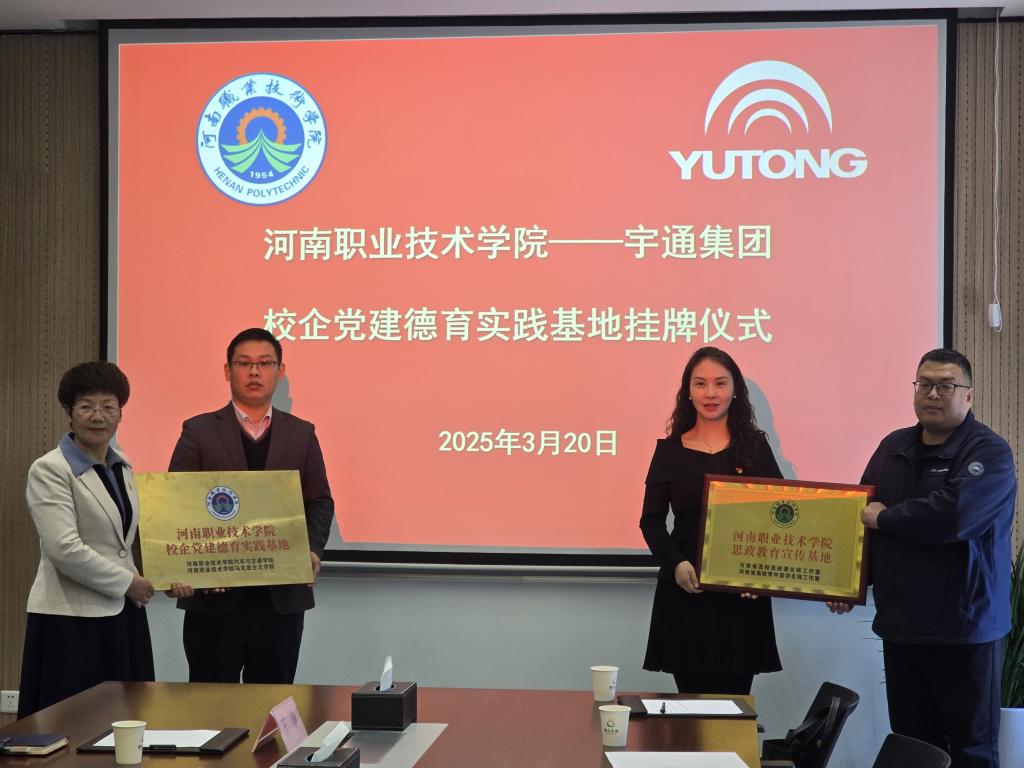 交流结束后,三方隆重举行“党建德育实践基地”“思想教育宣传基地”揭牌仪式。本次活动是学校与郑州宇通集团股份有限公司开展校企合作的内容之一,也是河南省高校思政课名师工作室与河南省高校青年宣讲名师工作室开展思政教育宣讲活动的一部分,同时还是马克思主义学院教师第三党支部深入探索党建互融共建模式的具体实践。活动拓展了校企合作的路径,丰富了思政课育人资源,创新了党建工作模式,具有重要的现实意义。(撰稿:齐明明,审稿:梁杰)