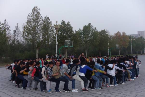 本次活动以“共筑梦想•快乐快乐”为主题,特聘河南省派尼尔教育培训集团首席心理素质培训师、资深教练、心理素质训练督导师、中国体验式商学院特聘讲师王喜霏和王伟主讲。本次活动采用室外心理素质拓展训练的方式进行,吸引了众多师生现场观摩。教练通过组织“心理对抗赛”、“众志成城”、“激情节拍”、“同心圆”等活动,意在培养学生坚强的意志、良好的人际关系以及较强的团队意识。活动长达五个小时,虽然天气时热时冷,但现场气氛始终热烈,学生情绪高涨、心灵受到强烈冲击。参训学生均表示将把在活动中学到的“信任、态度、接纳、支持、共赢、感恩”等理念运用于学习和生活中,并把获得的心理正能量传递给所在班级和系(院),共同提升心理素质,快乐成长成才。