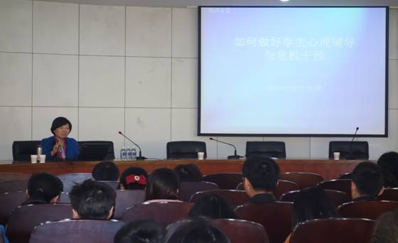 讲座中,郭玉琴教授首先对上次关于“大学生常见心理问题的种类及识别”的讲座内容进行梳理和回顾,然后结合自身积累的大量实际案例,深入浅出地讲解心理问题发生的逻辑,做好学生心理辅导与危机干预的原则、方法、技术和步骤等,并告诉大家做好学生工作要从“心”开始,关注学生的心理健康,做学生成长道路上的博导。讲座在轻松、活泼、愉快的氛围中进行,现场不时爆发出热烈的掌声和欢快的歌声。在场教师和学生深受感触,纷纷表示要把学到的心理辅导和危机干预的理念、技术和方法运用到实际工作中。